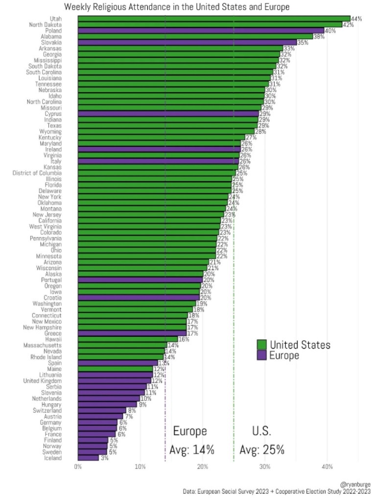 Если мы собираемся решить миссионерскую проблему секуляризма, нам нужно взглянуть на различия между Соединенными Штатами и Европой, а это значит, что нам нужно внимательнее взглянуть на различия между разными странами Европы и разными штатами Соединенных Штатов.